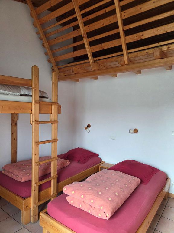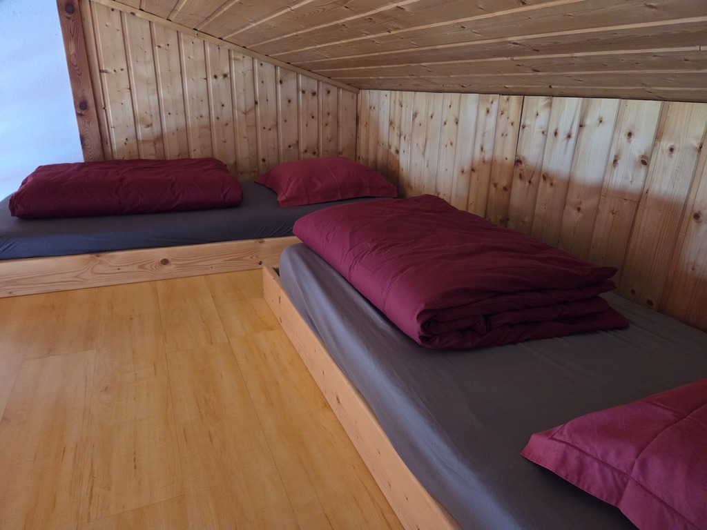 comprenant un lit double, 3 lits dont deux situés sur la mezzanine avec accès direct vers l'extérieur du gîte.